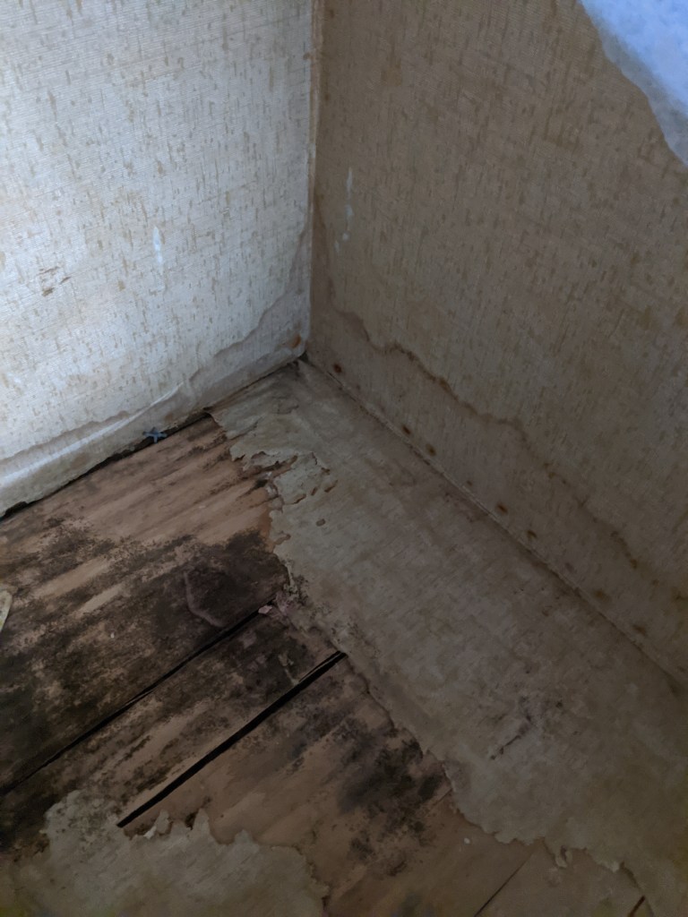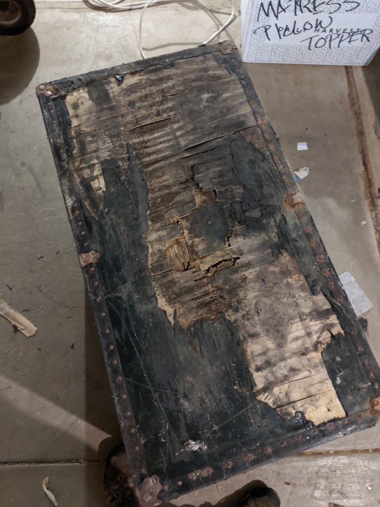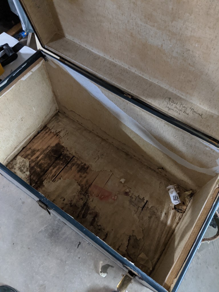 The steamer trunk took A LOT of water damage to it; about 2 inches worth I’d wager. The bottom was utterly a loss and as you can imagine, the musky smell in the trunk itself was… it had character.