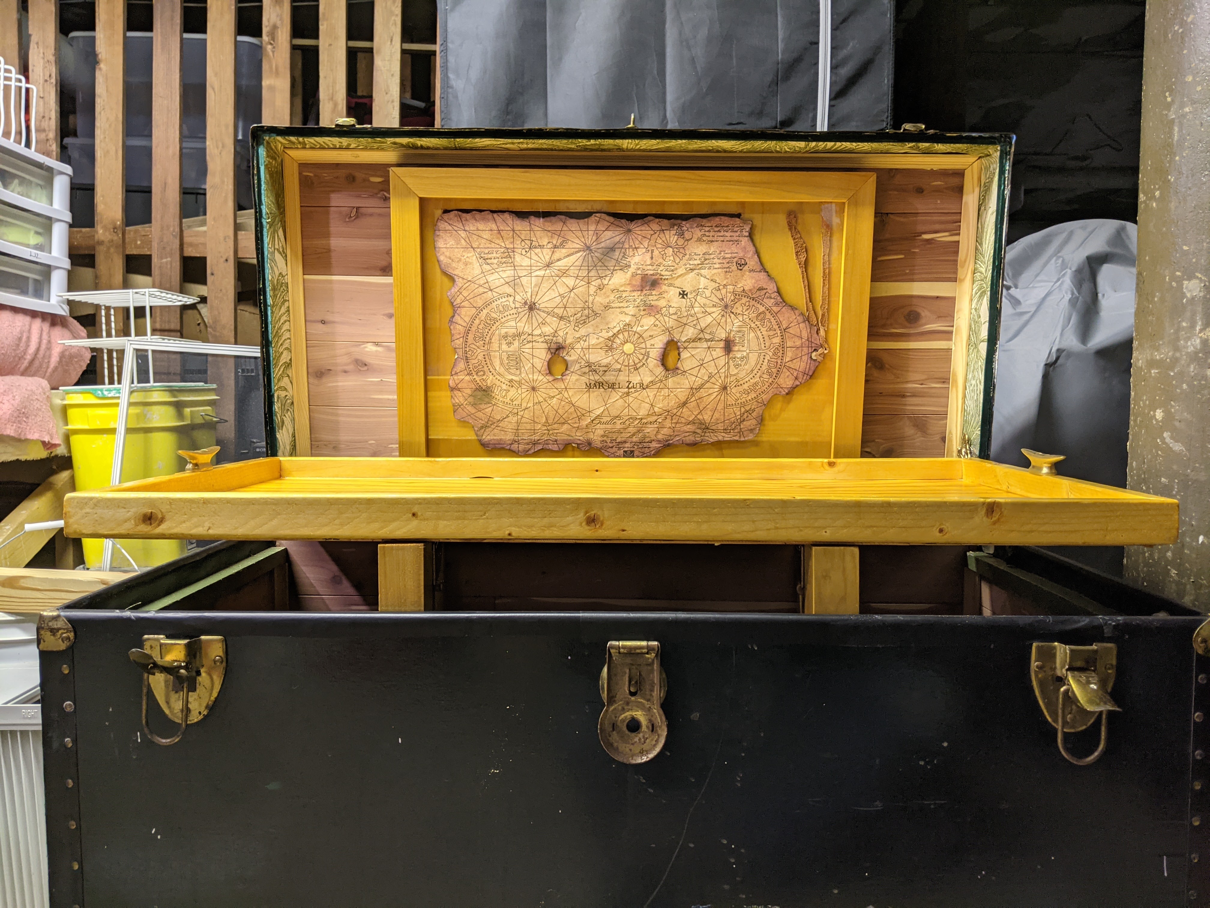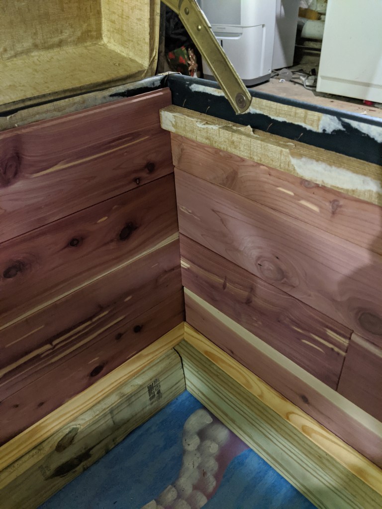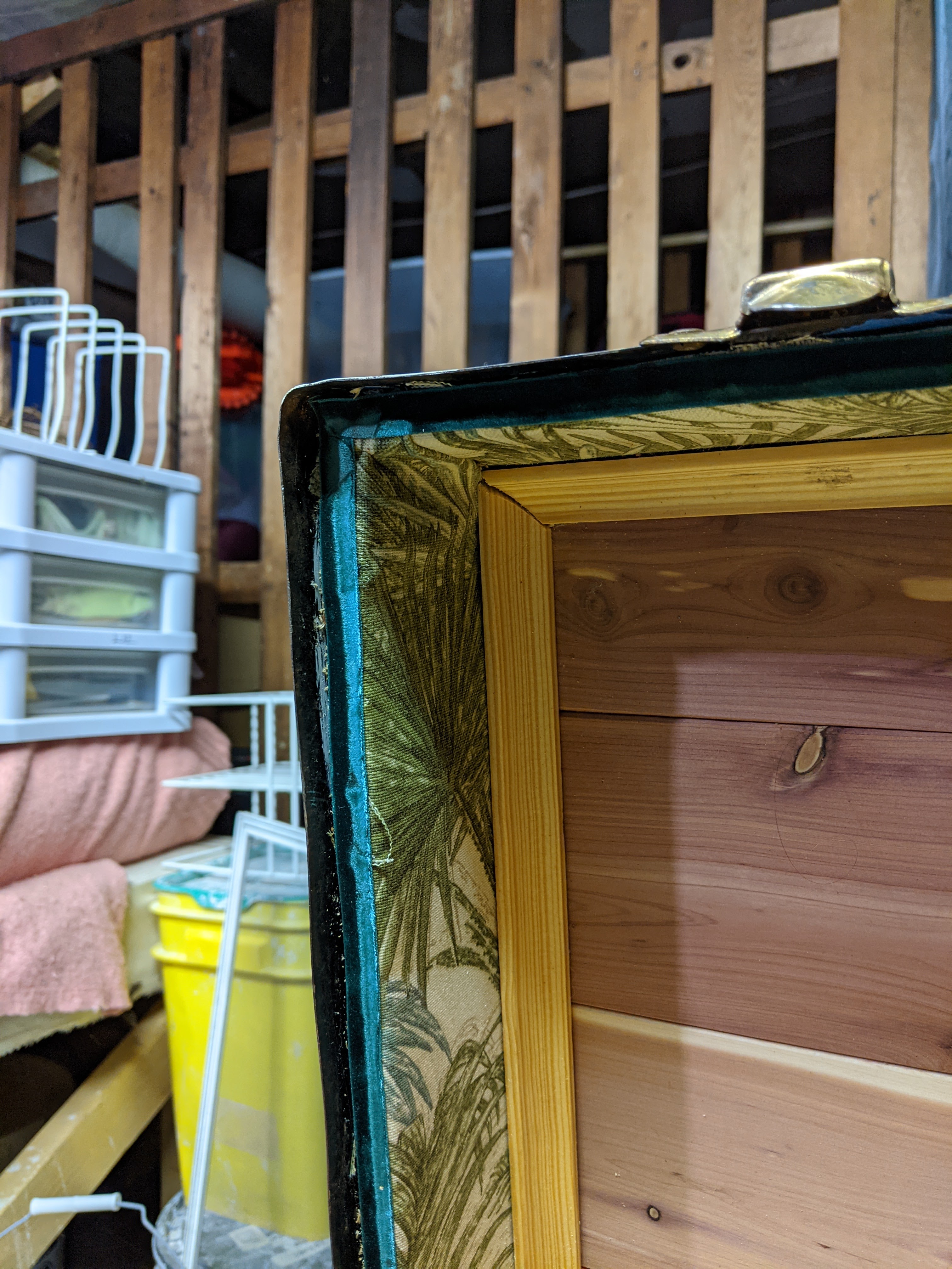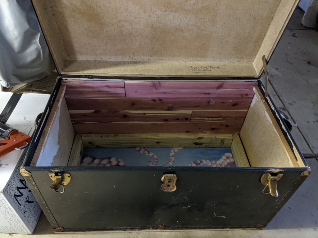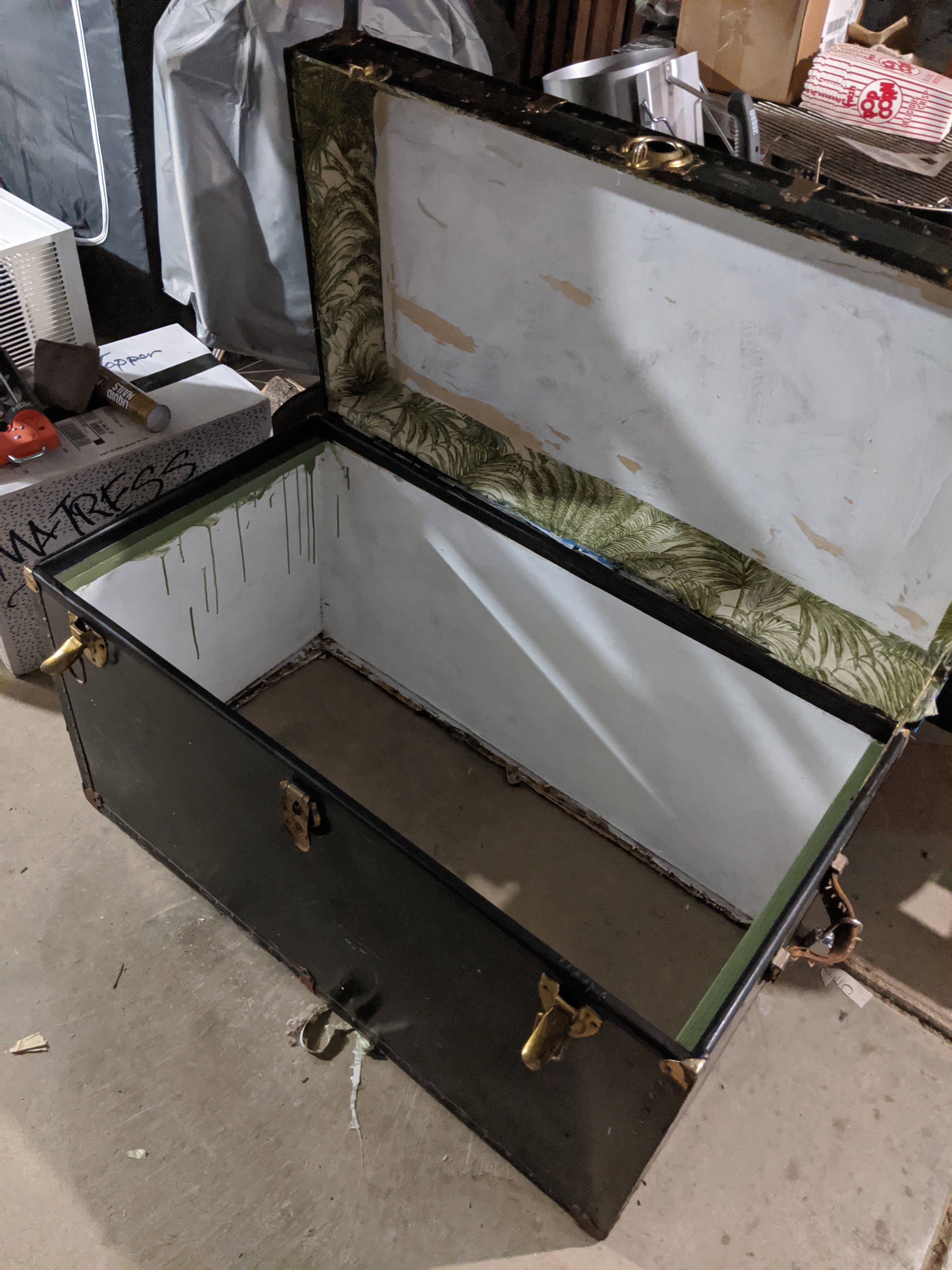 It was fairly bad. Lily was put out and understandably so, she had the trunk for years. When she moved out in July of 2019, she decided to leave it behind and told me to do with it what I wanted. I poked around at it; it could be repaired if I was crazy enough to fashion a new bottom for it. I gave myself a year deadline to address it so it didn’t take up space if it needed to go.