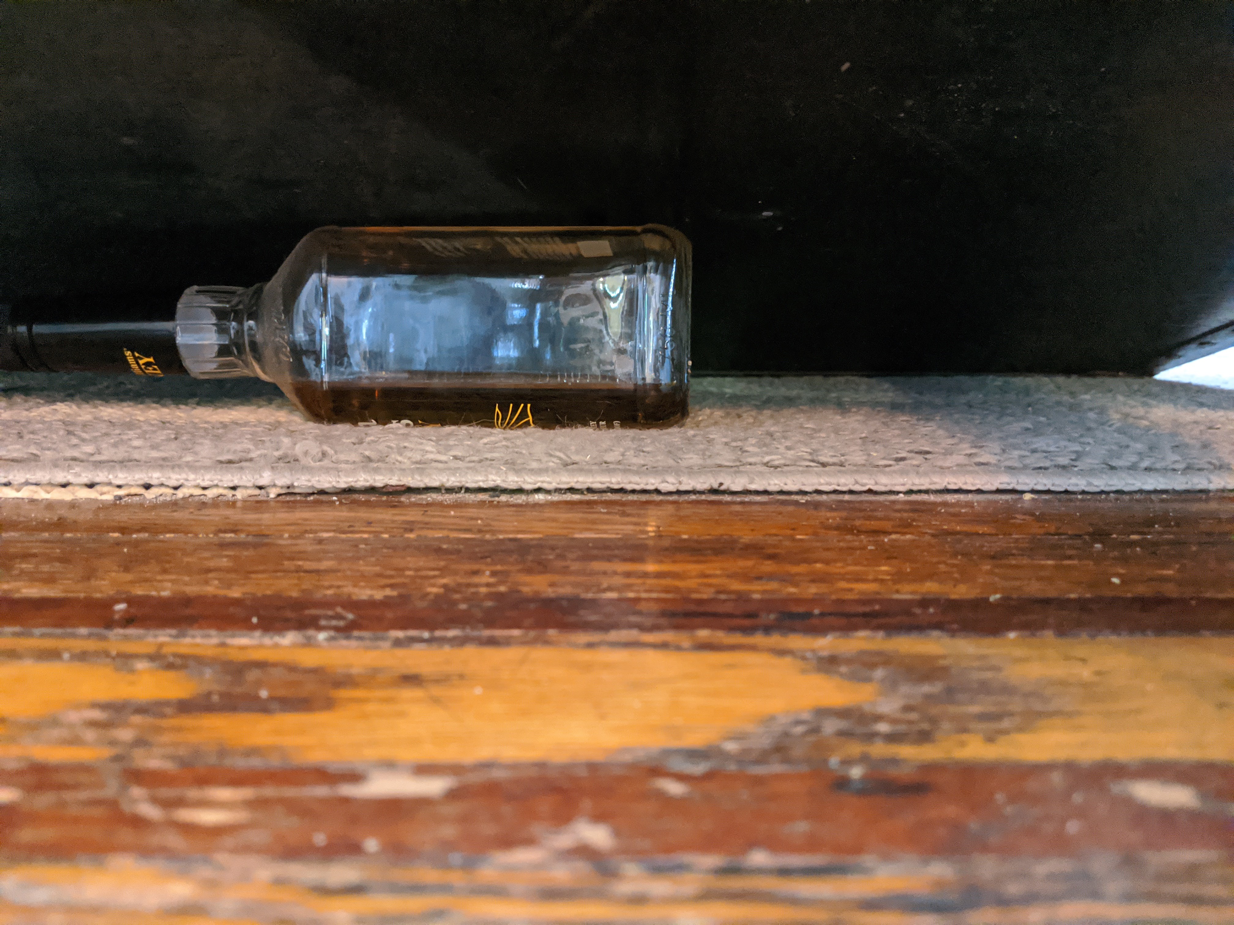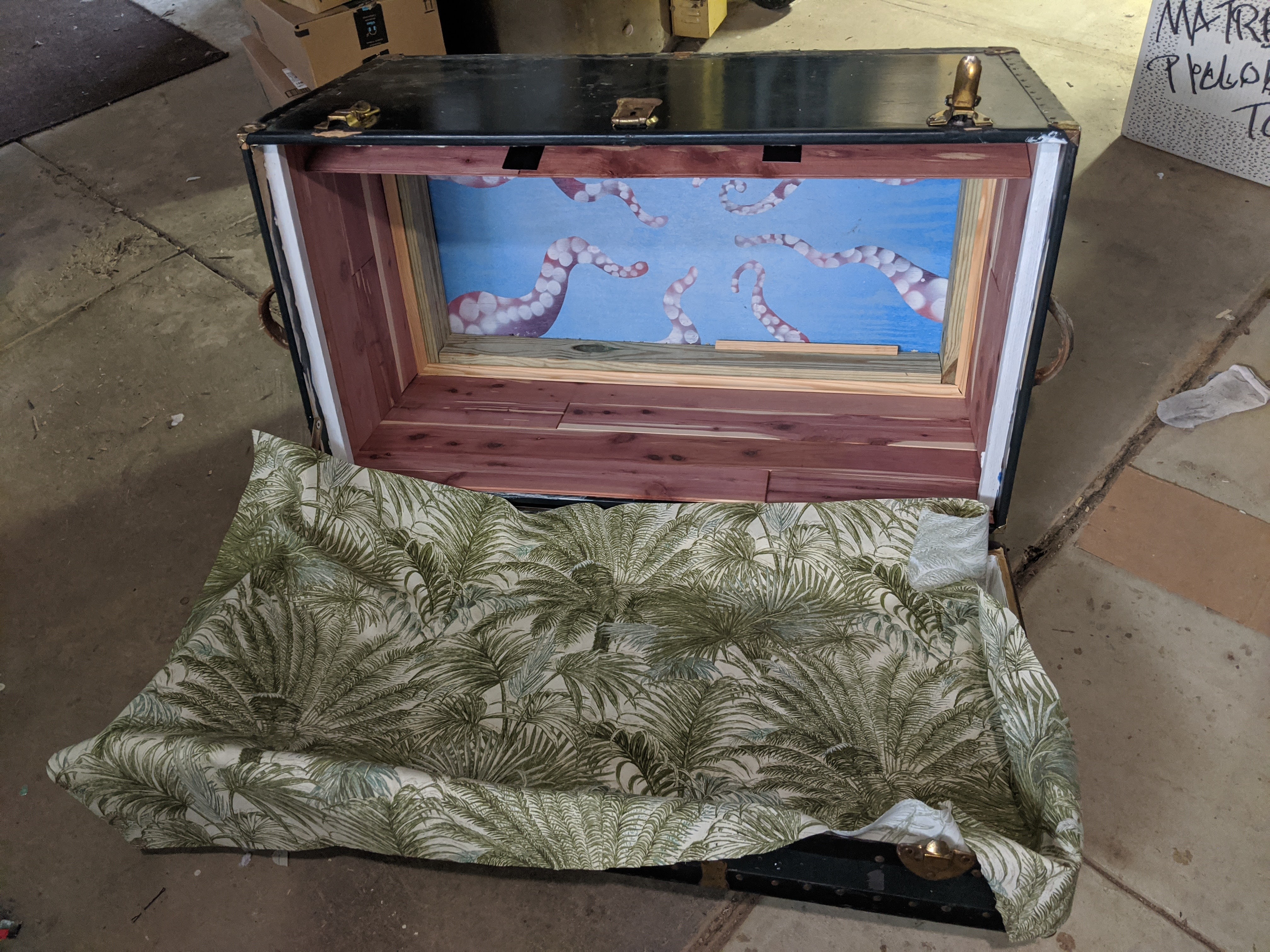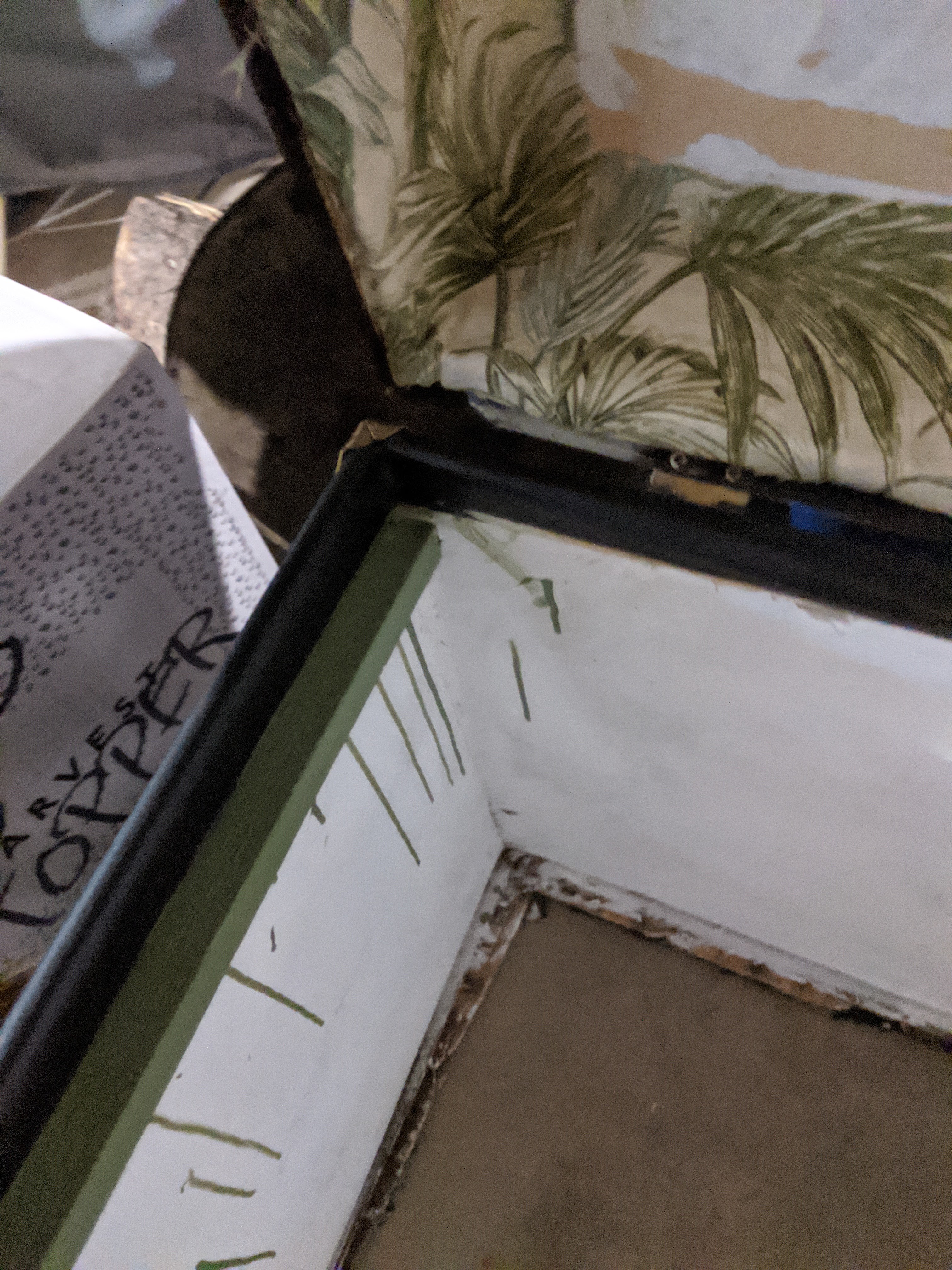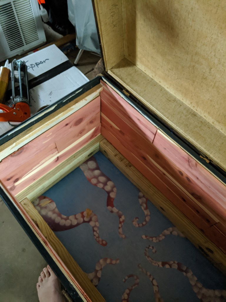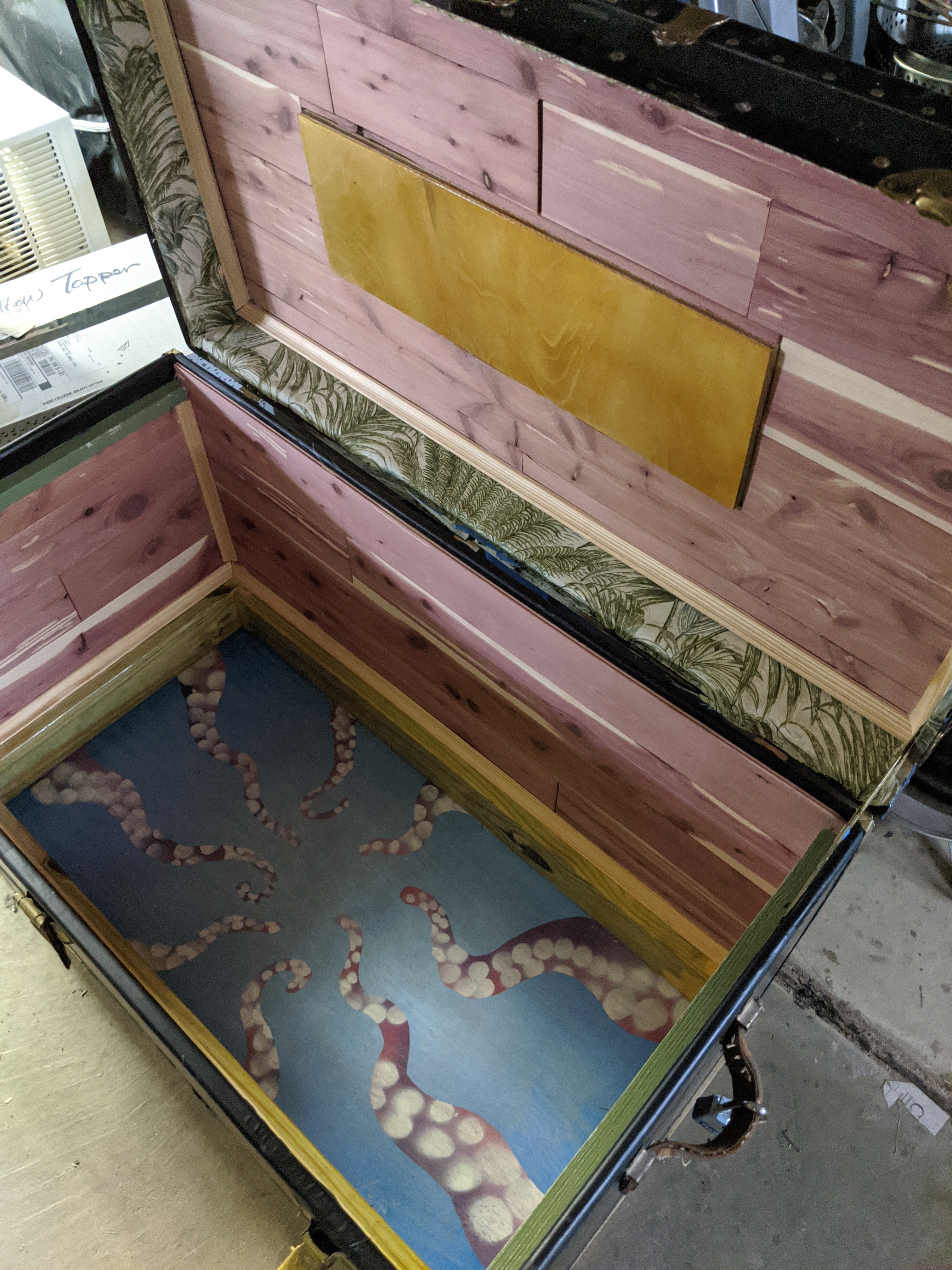 It was fairly bad. Lily was put out and understandably so, she had the trunk for years. When she moved out in July of 2019, she decided to leave it behind and told me to do with it what I wanted. I poked around at it; it could be repaired if I was crazy enough to fashion a new bottom for it. I gave myself a year deadline to address it so it didn’t take up space if it needed to go.