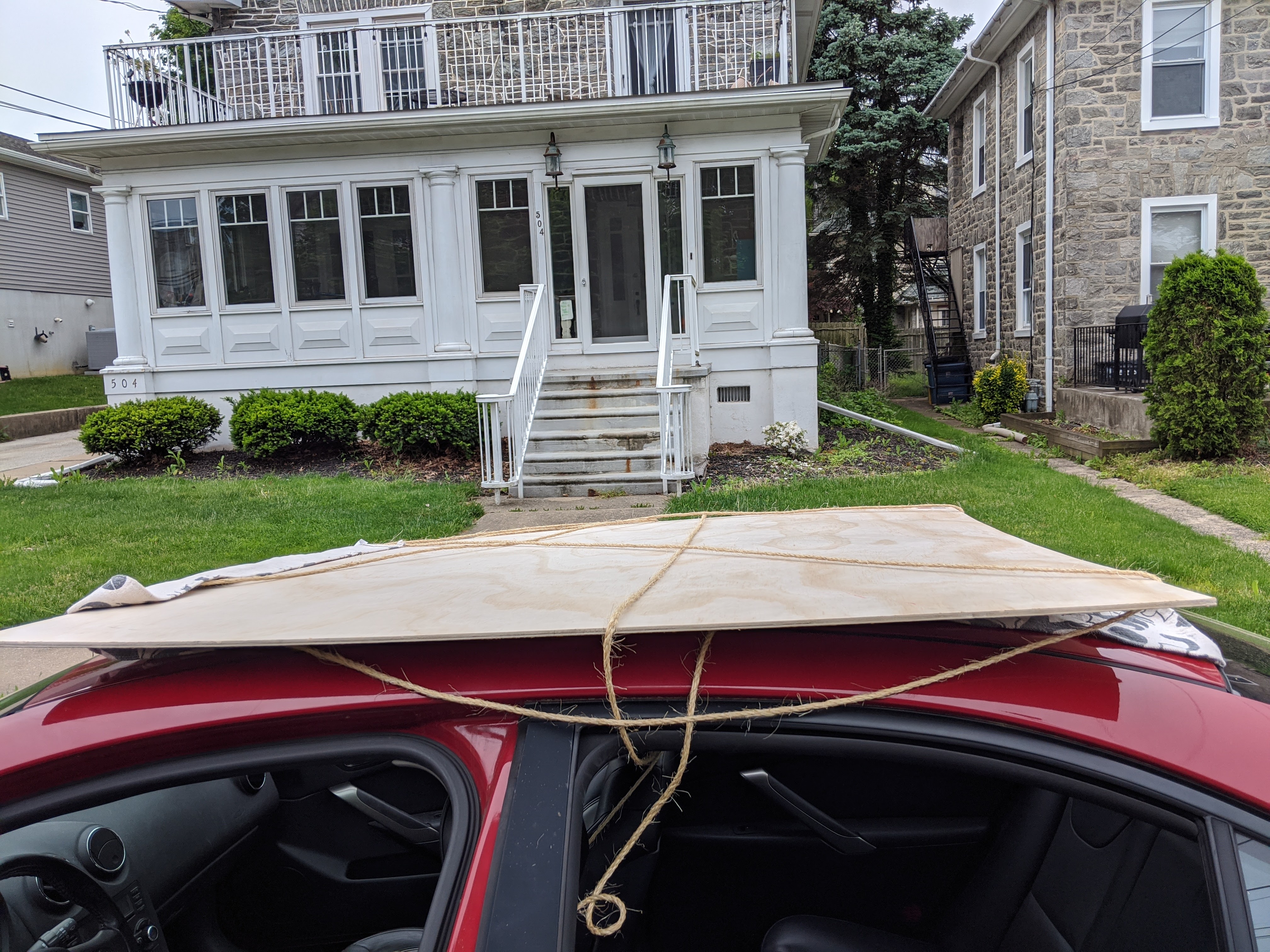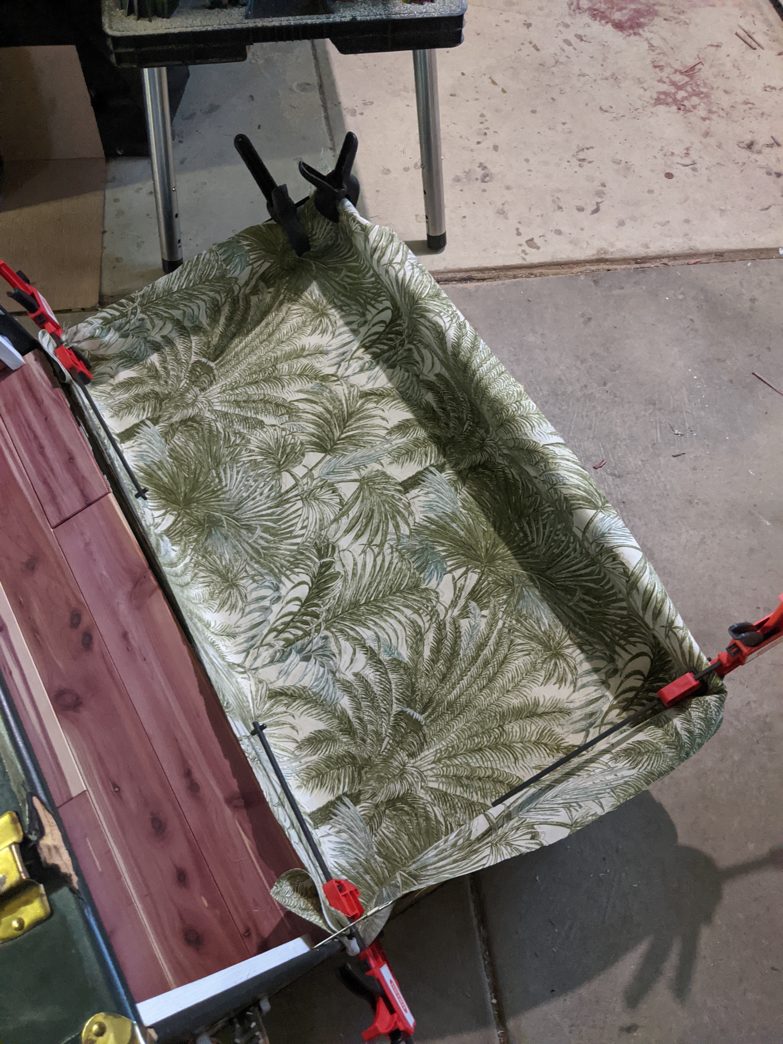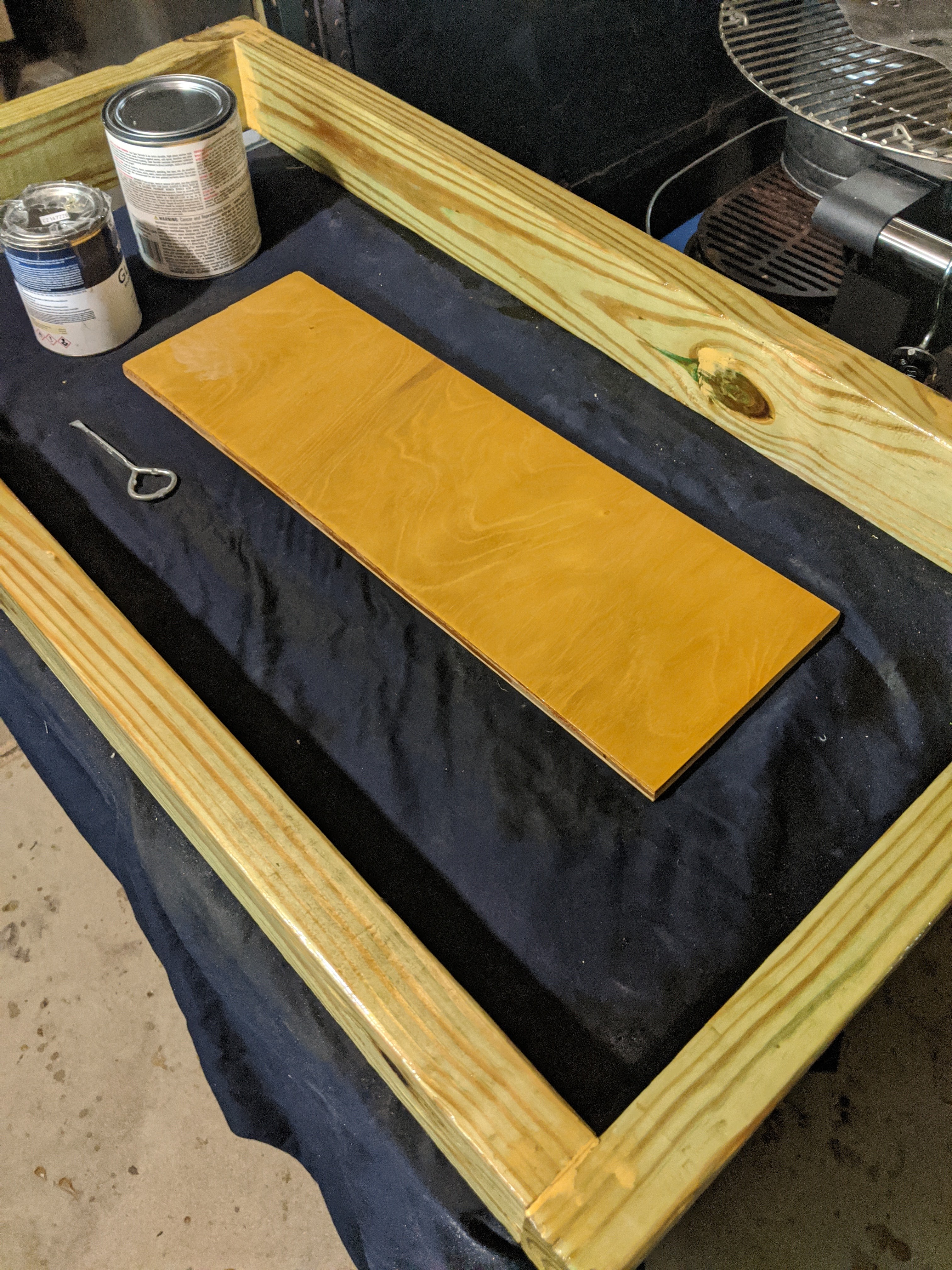 When I started hammering out details on how to address the steamer trunk, I knew I would need plywood for the bottom. I could go through the trouble of removing all the riveted bands attached to the bottom but sensibly they are all interlaced from its primary construction. I already had the plywood prior to the pandemic, but hadn’t cut it yet – now things were underway, I did that prior to cutting.