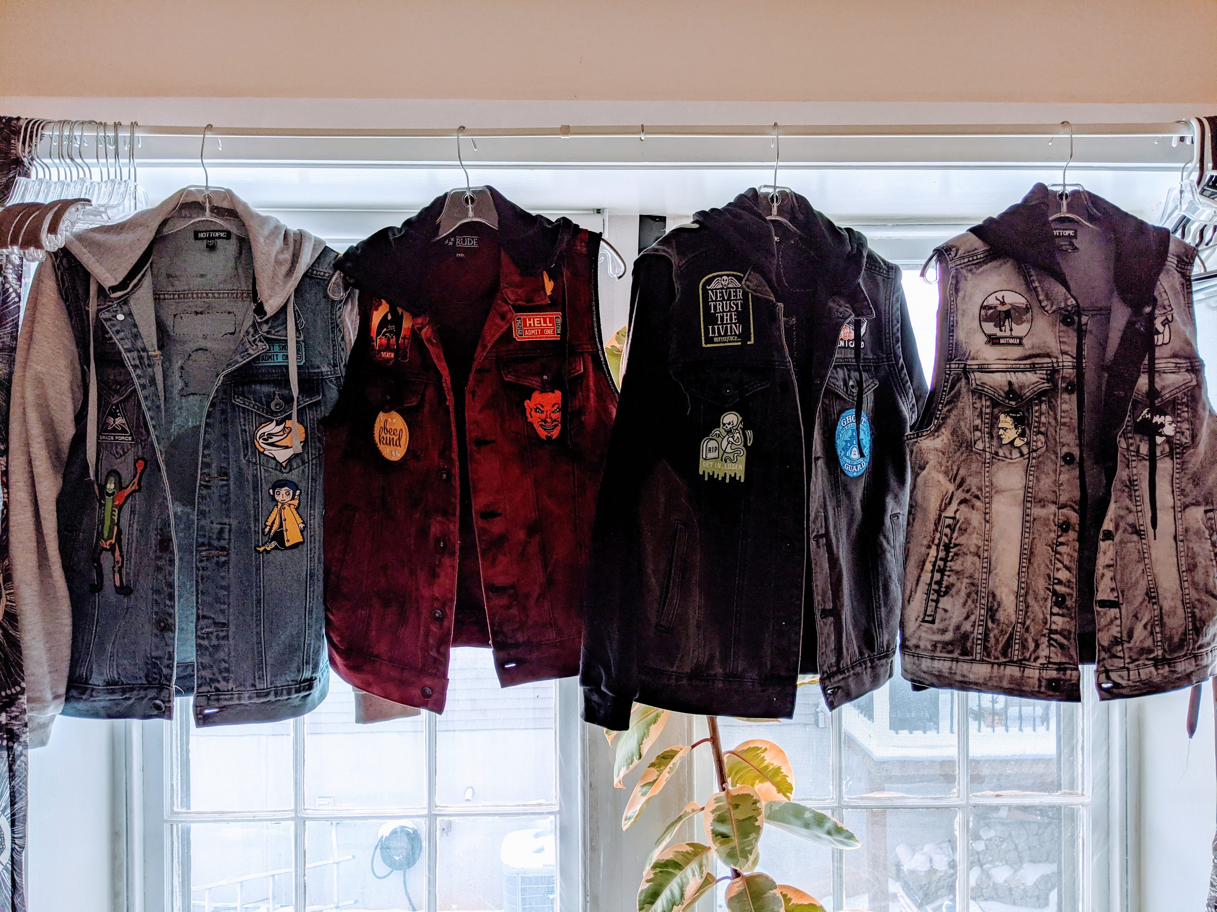 Both Spring and Fall were vest sets sold by Hot Topic as denim hoodies with removable sleeves and hood cowls. Spring and Fall are also the only two jacket/vests that have patches past the front pockets, which means I had to switch around the interior pockets on both to pull the patches off but they are not NEARLY challenging as putting the patches on front pockets – such a tight turn around but it’s so worth it when they get framed up so fricking well!!