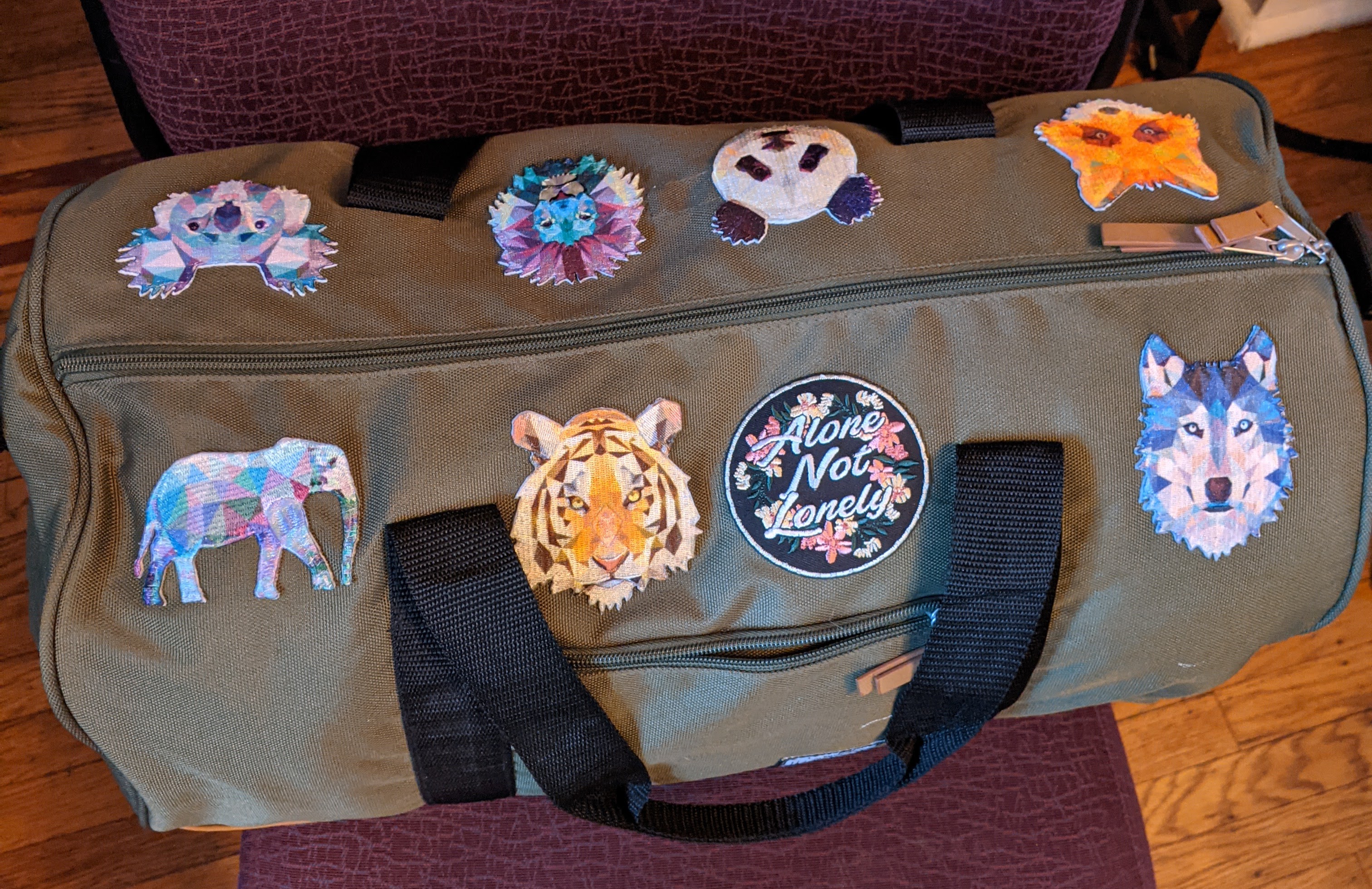 Fast forward who the frack knows; I run into a menagerie of Geometric Animals on Etsy doing a patches cruise, first catching the eye of the Tiger and tracked down the rest. The Koala was hiding out on Amazon and I had to snag him solo. To bring it all together, I had a “Alone but Not Lonely” patch I snagged for a family friend but it didn’t apply to them anymore because they are happily twined with someone and I couldn’t have been happier for them!