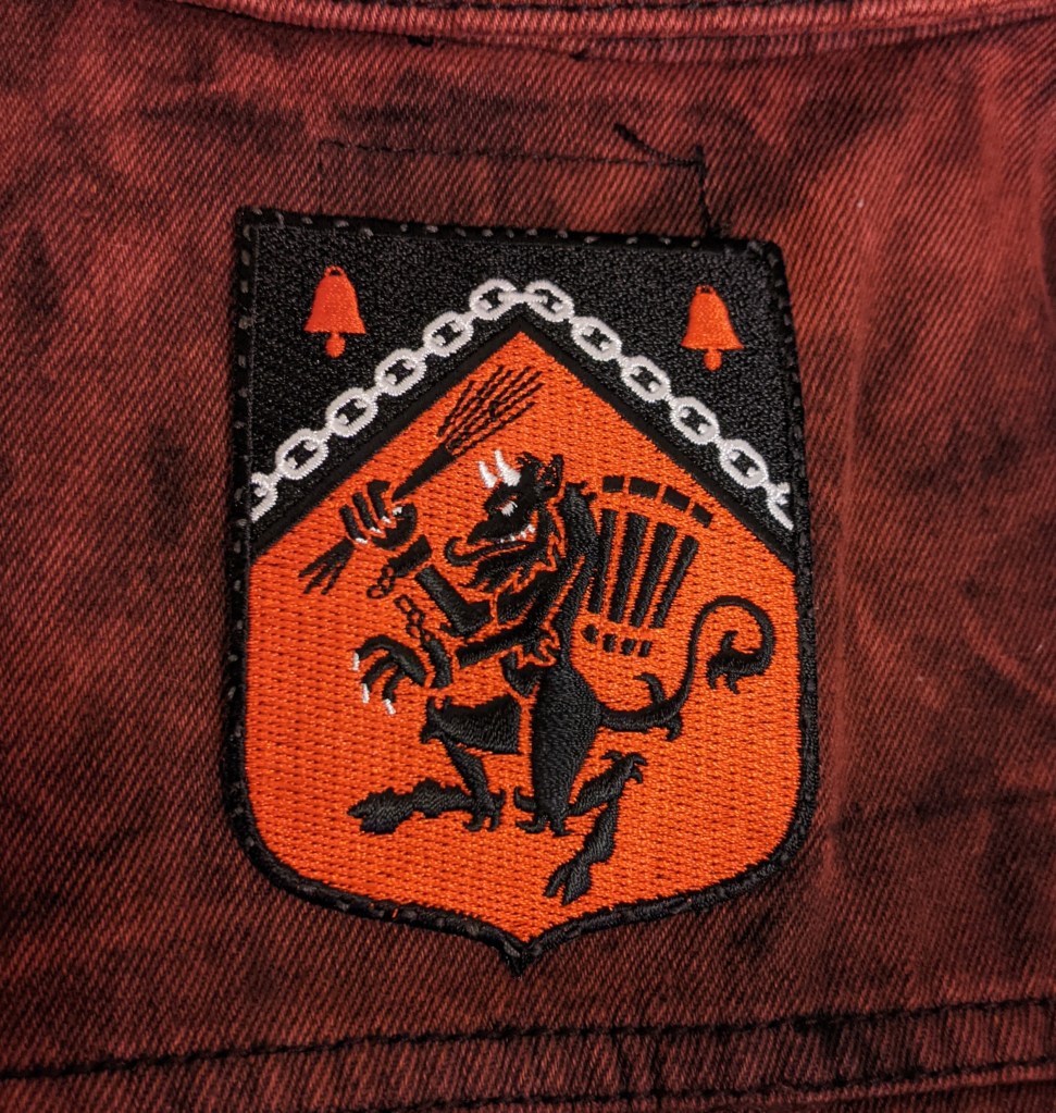Ah Krampus!!! One of my favorite Yuletide deities. I loved the book by Brom regarding Krampus and it brought me that much close to the mythology and a new personal divine creature to revere. He was the perfect addition to the vest and his placement only makes it that much more… Sly as you really don’t know you have upset until you are upside down and looking at his back, right before he thrashes you firmly with his rods and puts you in his sack of mischief.